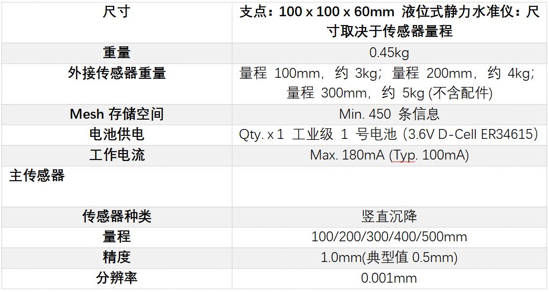 • 监测垂直位移或沉降的场合:最小系统需2个传感支点,一个作为沉降的参考点,其他作为相对沉降测点,以参考点测量值为基准求差,从而获得相对的竖直沉降。