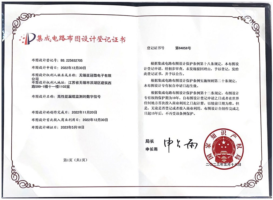 • 核心技术自主可控,并取得集成电路布置图设计证书;