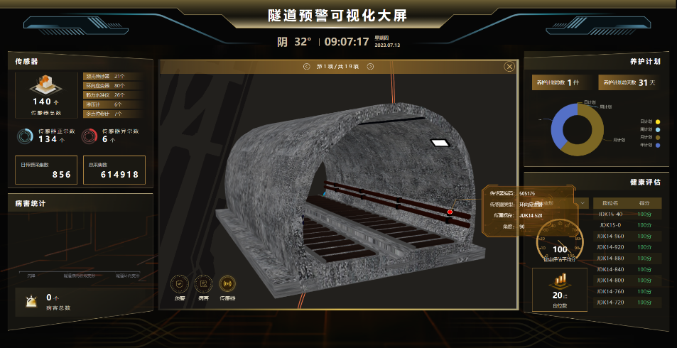 基于激光测距、静力水准仪、渗压计、土体位移计等传感器,满足隧道横向收敛、沉降、环向应变、水位及土体位移监测需求,采用智能无线传感自组网技术,完成隧道智能健康监测系统。