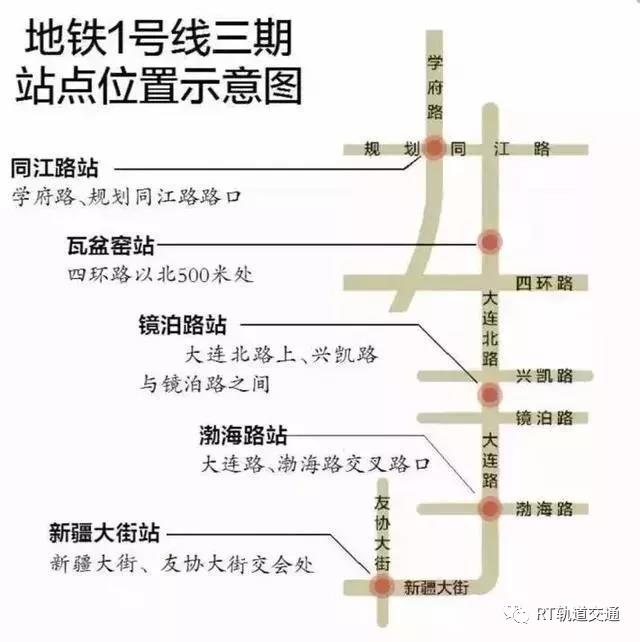 途经站点:目前将开通新疆大街、渤海路、镜泊路、同江路四个站,瓦盆窑站待完成周边环境设施整体配套综合整治后开通。