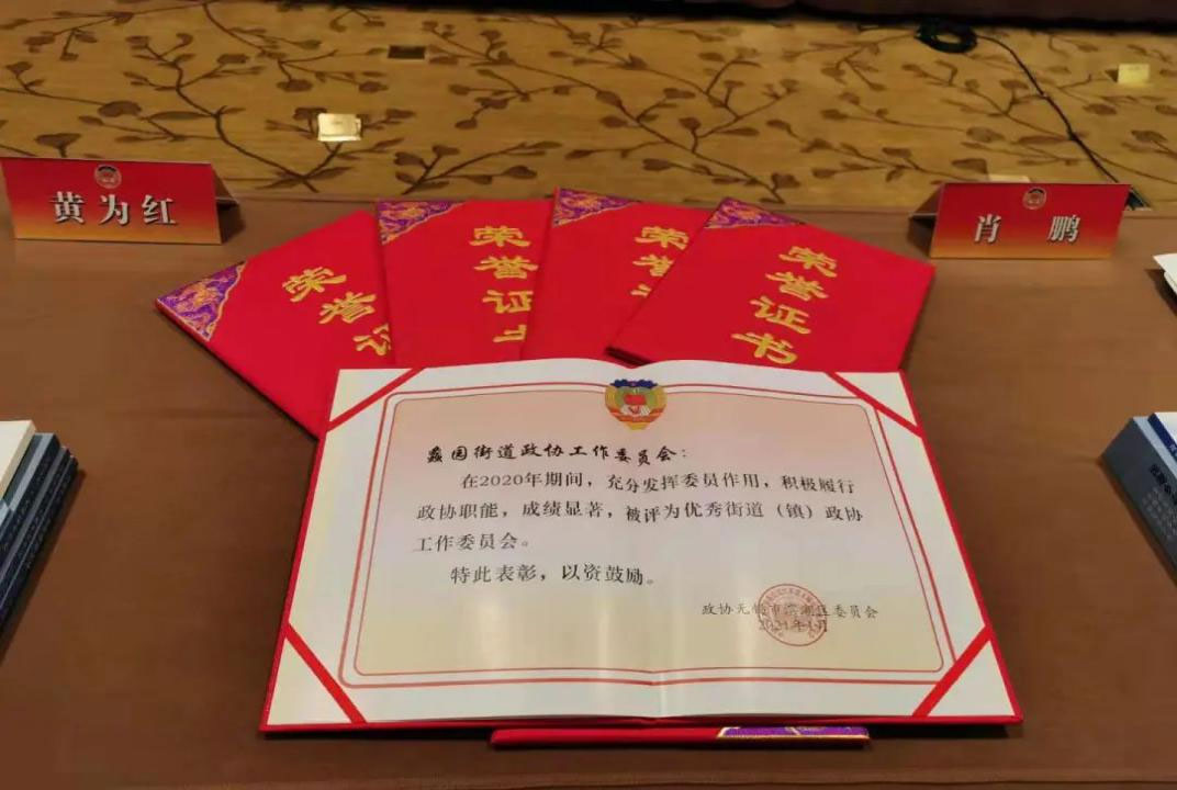 ▲蠡园街道政协工作委员会荣获优秀街道(镇)政协工作委员会