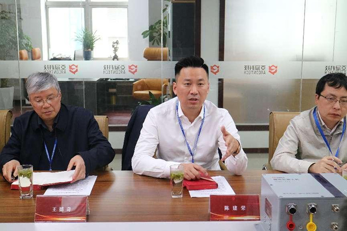 亚冠公司总经理芮易教授向许主席、宋主席及各位领导介绍亚冠公司轨道交通结构监测的原理