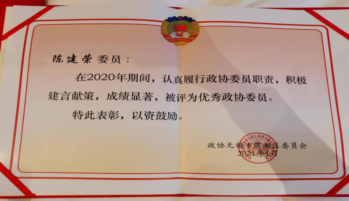 ▲江苏亚冠轨道交通科技有限公司董事长陈建荣获评优秀政协委员