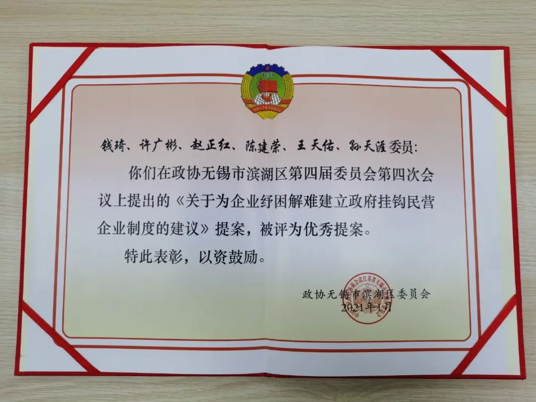▲江苏亚冠轨道交通科技有限公司董事长陈建荣提出的《关于加强社区(村)应急管理志愿者队伍建设的提案》《关于为企业纾困解难建立政府挂钩民营企业制度的建议》两个提案也被评为优秀提案